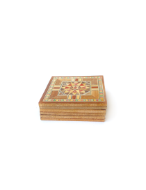 Handmade Mosaic Marquetry Wooden Coasters (Set of 6)A stunning set of 6 handcrafted wooden coasters featuring intricate geometric mosaic inlays. Perfect for protecting surfaces with a touch of...